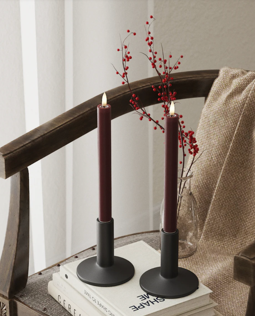 Nuestras velas de cera LED Cherry de 23 cm funcionan con pilas. Están hechas de cera auténtica y combinan genial con el color de nuestros candelabros. Incluyen pilas y control remoto; vienen en una elegante caja de regalo. Seleccione el modo de parpadeo para un brillo sutil, sin preocuparse por derrames de cera ni ráfagas de viento.