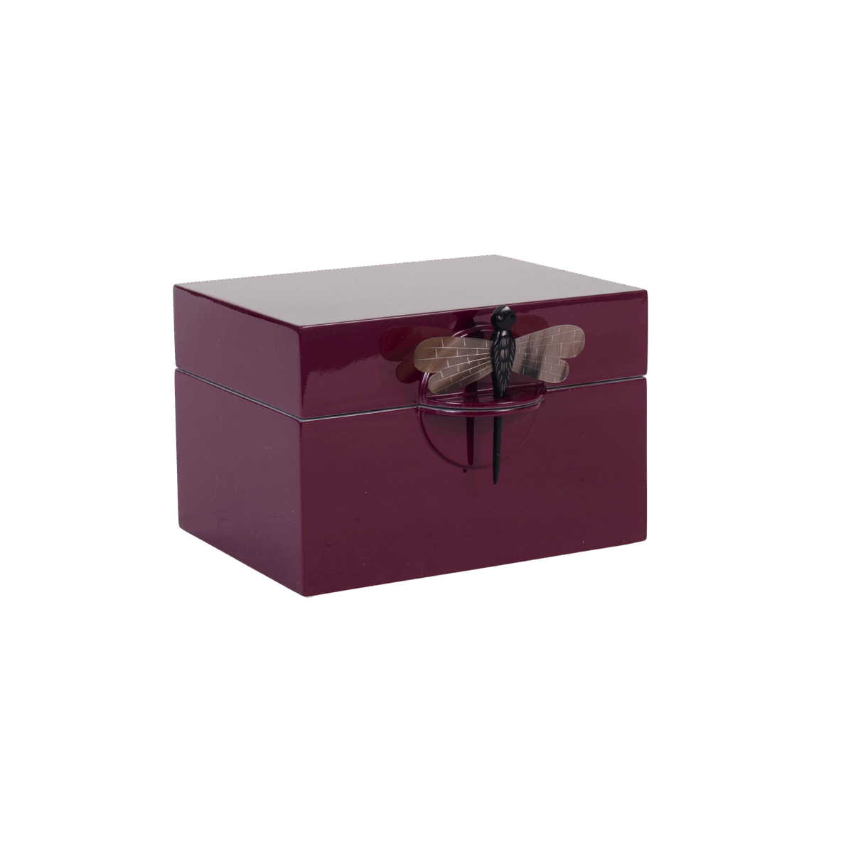 Elegante y funcional, esta caja de laca color berenjena es el accesorio perfecto para mantener tus objetos personales organizados con estilo. Su acabado brillante le aporta un toque sofisticado, ideal para complementar cualquier espacio, desde el tocador hasta la sala de estar.