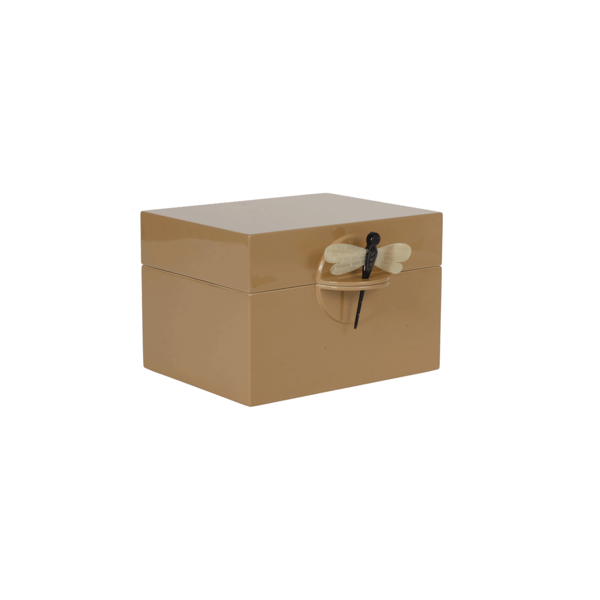 Elegante y funcional, esta caja de laca color camel es el accesorio perfecto para mantener tus objetos personales organizados con estilo. Su acabado brillante le aporta un toque sofisticado, ideal para complementar cualquier espacio, desde el tocador hasta la sala de estar.