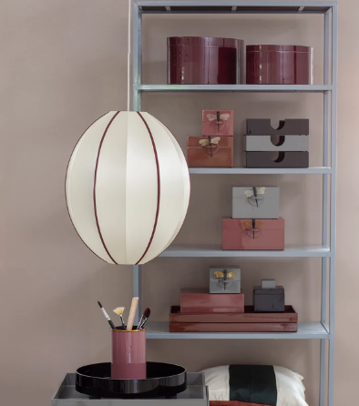 Negro por fuera, rosa por dentro, interior con bandeja para pequeños detalles.