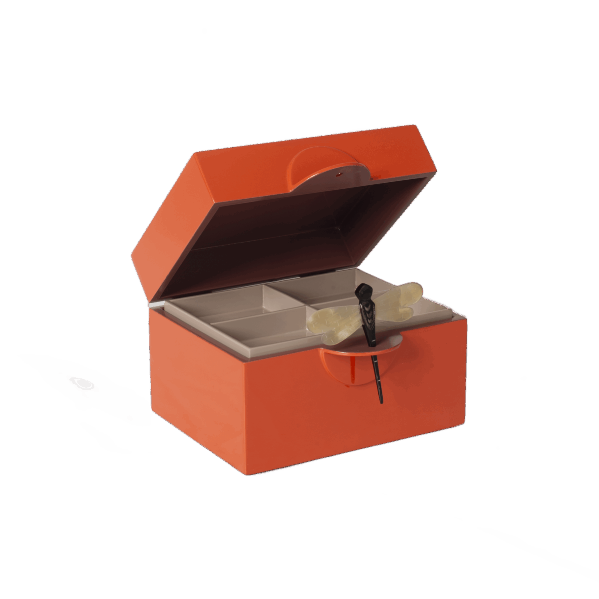 Elegante y funcional, esta caja de laca color Naranja es el accesorio perfecto para mantener tus objetos personales organizados con estilo. Su acabado brillante le aporta un toque sofisticado, ideal para complementar cualquier espacio, desde el tocador hasta la sala de estar.