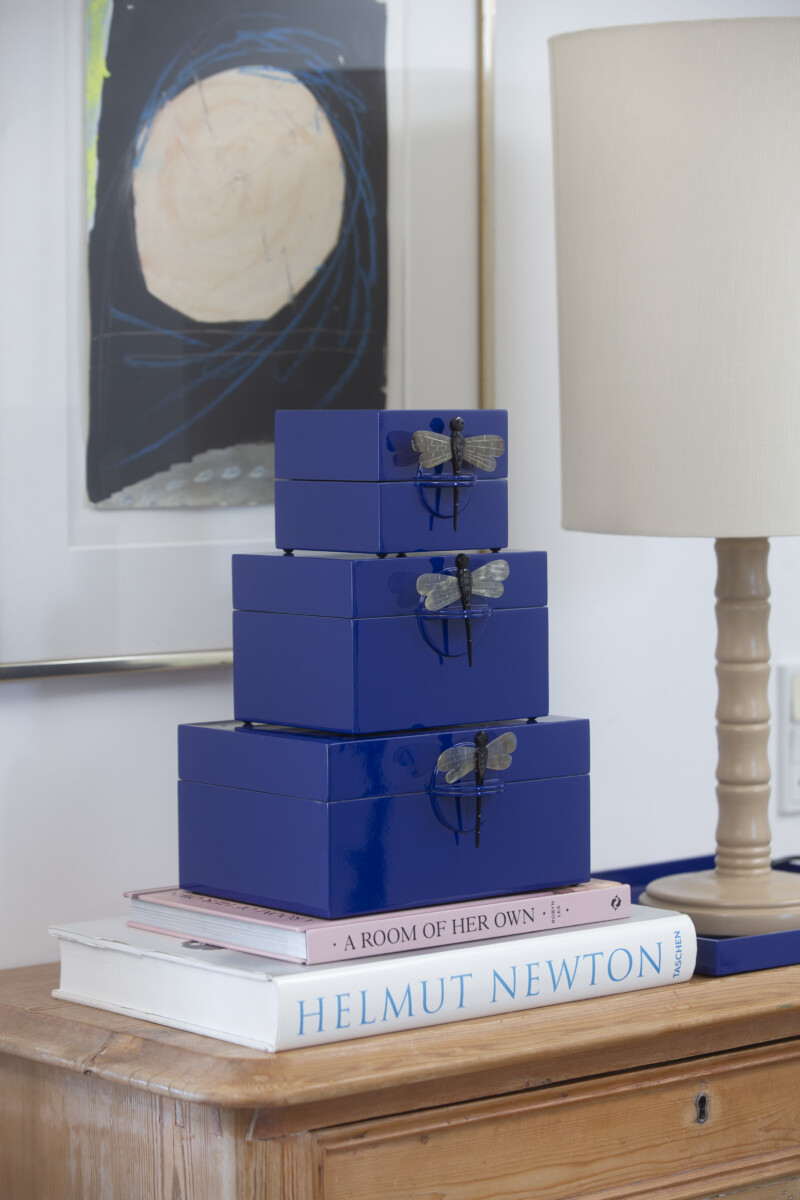 Elegante y funcional, esta caja XL de laca en color Azul pavo real, es el accesorio perfecto para mantener tus objetos personales organizados con estilo. Su acabado brillante le aporta un toque sofisticado, ideal para complementar cualquier espacio, desde el tocador hasta la sala de estar.
