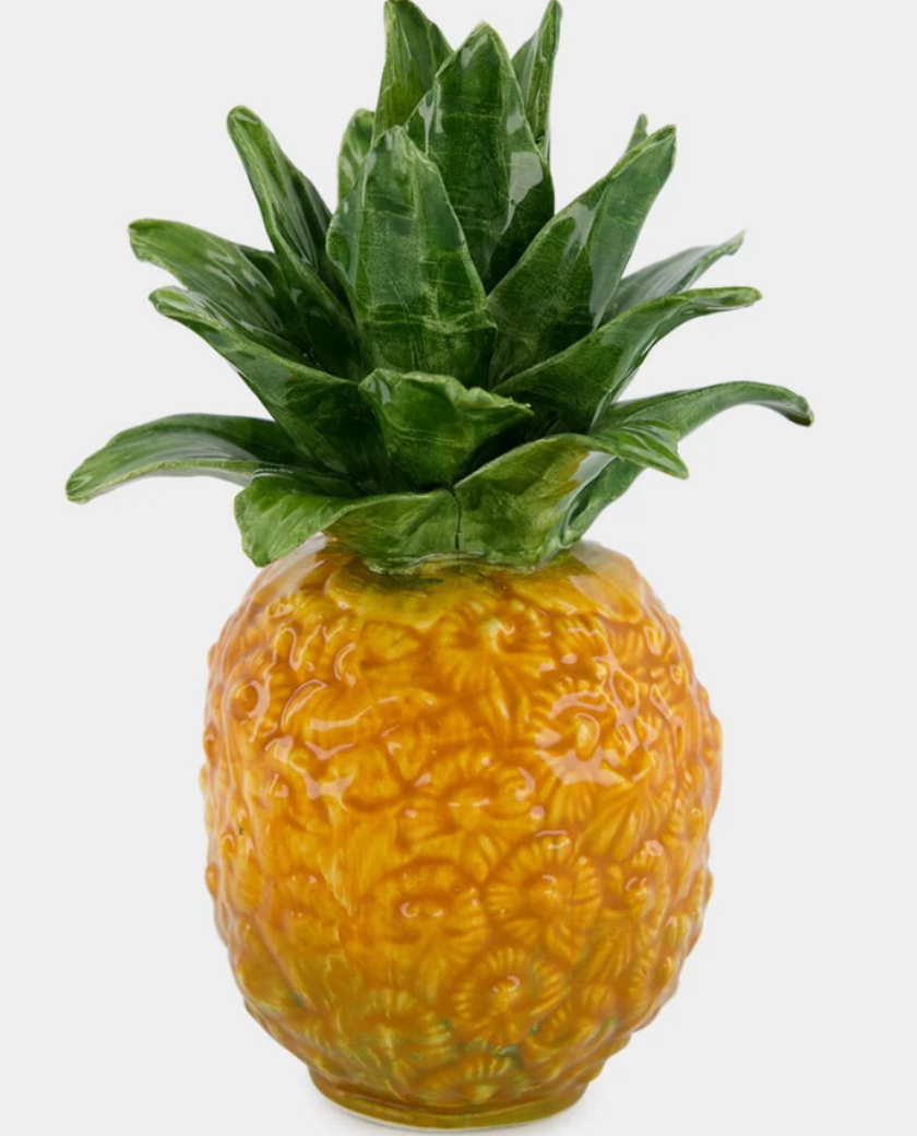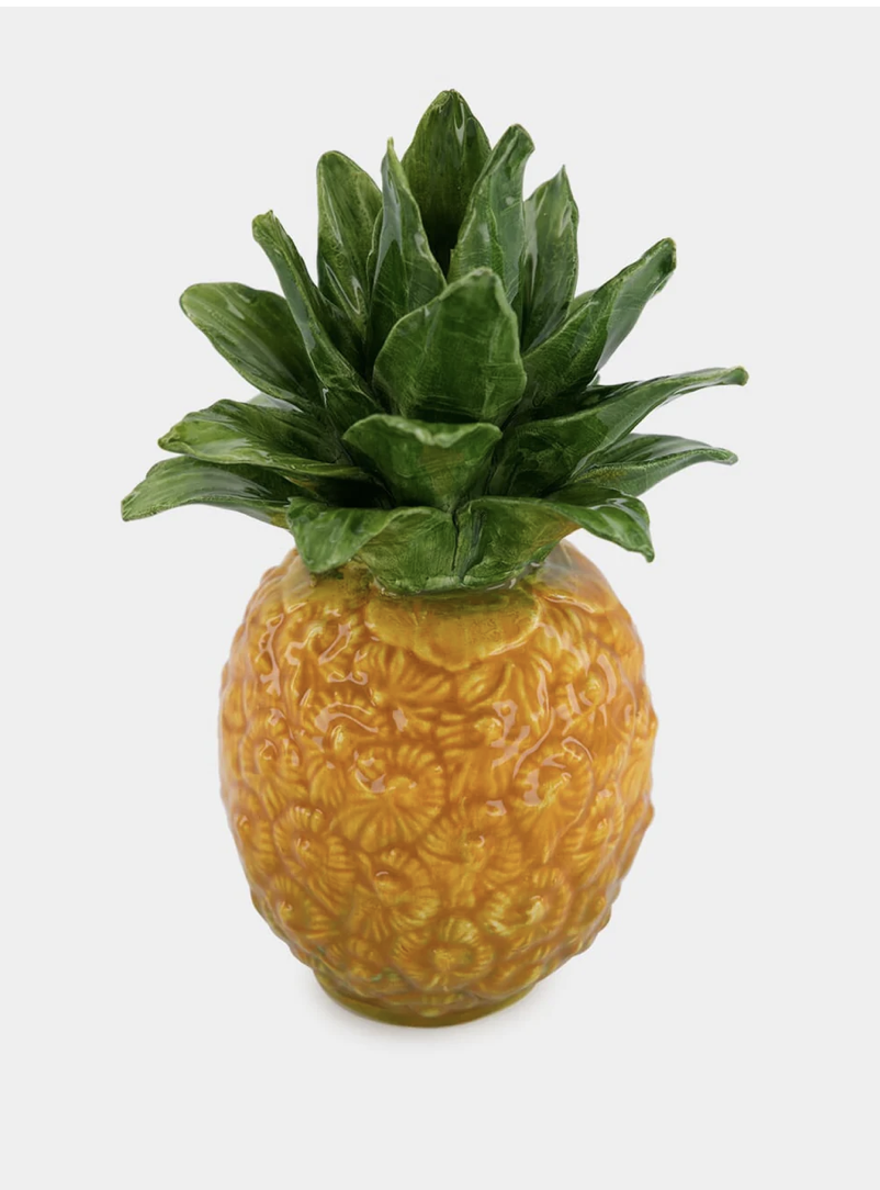 Precioso y original candelabro con forma de piña, realizado en porcelana esmaltada y acabado brilloso.