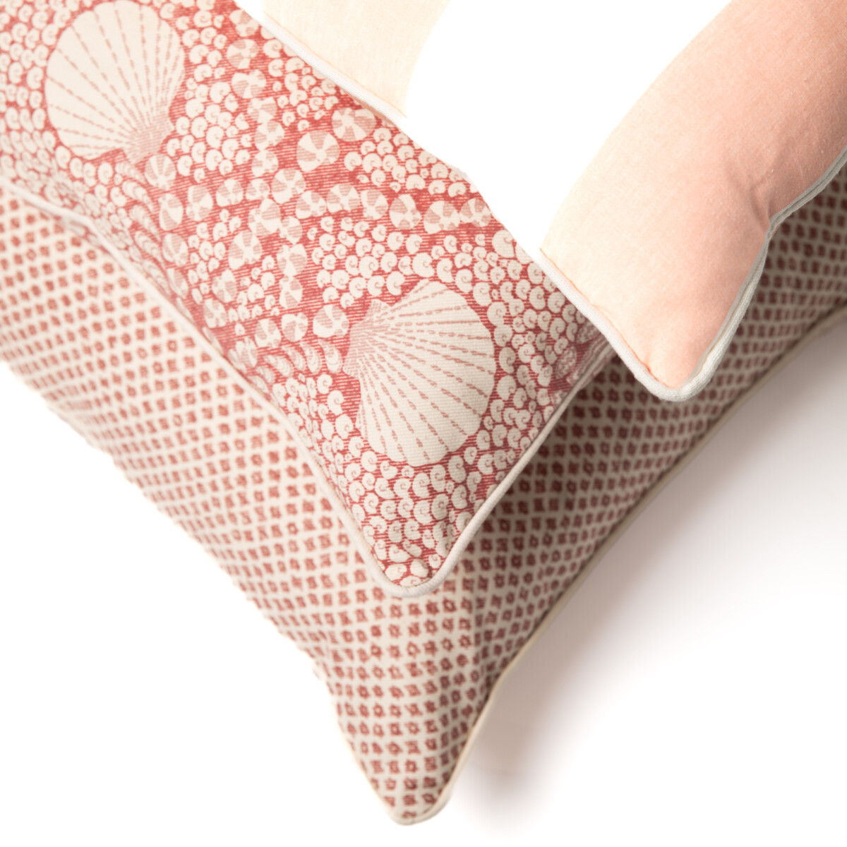 Cojín estampado Marden de FERMOIE seleccionada por nuestro estudio. Un diseño en tonos beige con motivos geométricos, estrellas en tonos pruna por las dos caras. Ideal para la decoración en el dormitorio, en el salón, es la pieza decorativa perfecta .