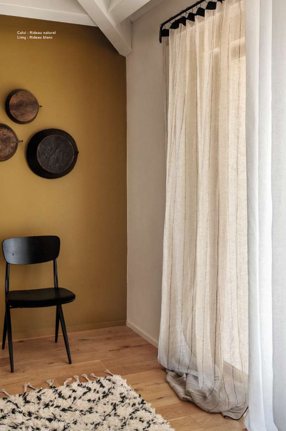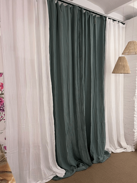 Ligera y clara, así es nuestra cortina en color Blanco, es de algodón 100% de firma Francesa, esta cortina es para ti si quieres filtrar suavemente la luz, ni muy tupida ni muy oscura , disponemos de más tonos, tiene sujeción por arandelas que trae la propia tela.