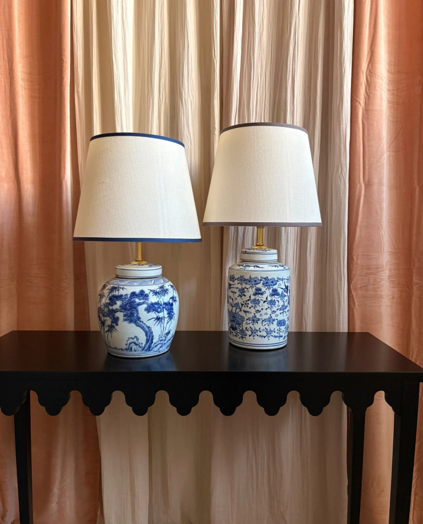 Elegante pie de lámpara tibor chino fabricado en cerámica y con un clásico dibujo en blanco y azul. clásica y perfecta para iluminar tu habitación, hall, salón..