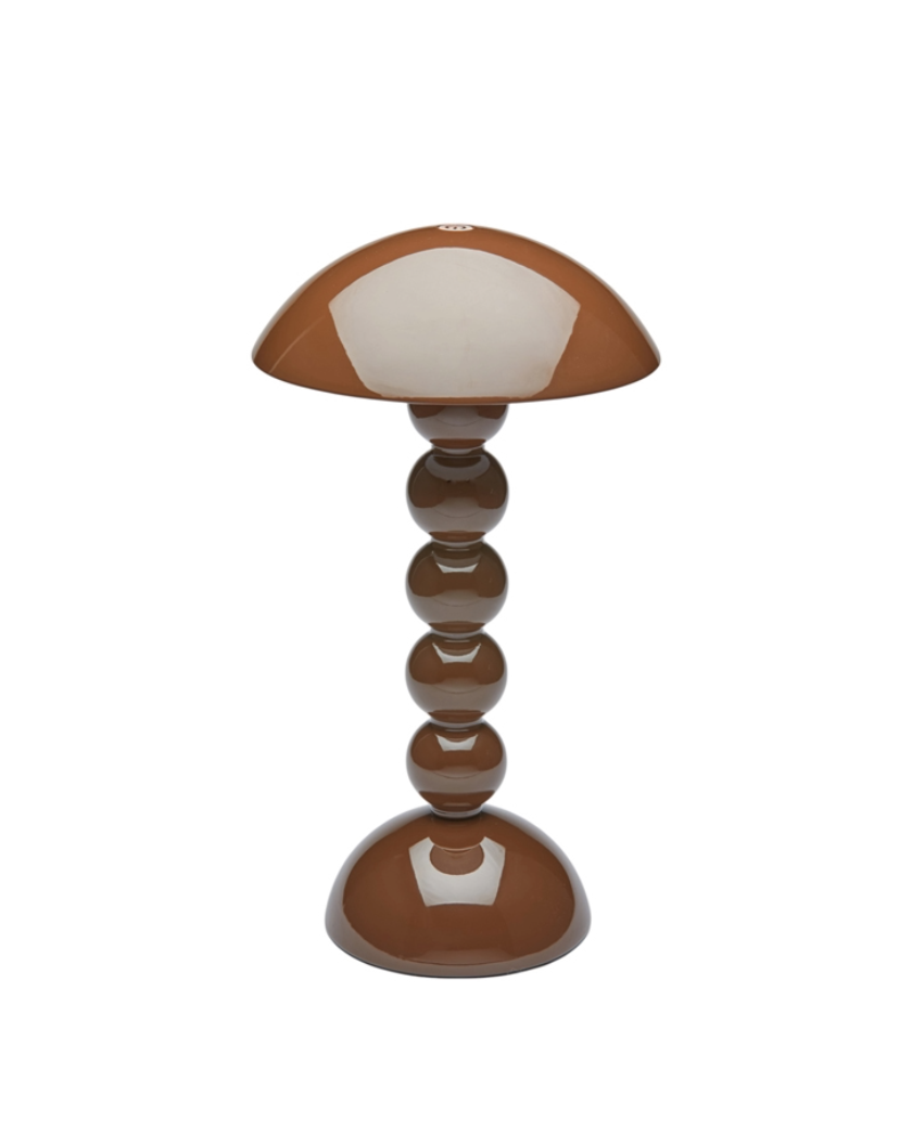 Original lámpara recargable elegante color marrón chocolate tiene un diseño en forma de bobina. Ofrece hasta 10 horas de duración de la batería en su nivel más alto de brillo y cuenta con tres niveles de luz ajustables.