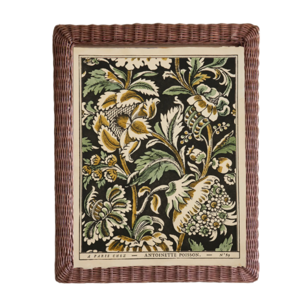 Elegante marco de ratán en tono marrón, hecho a mano por artesanos expertos. Incluye cristal. No incluye impresión.