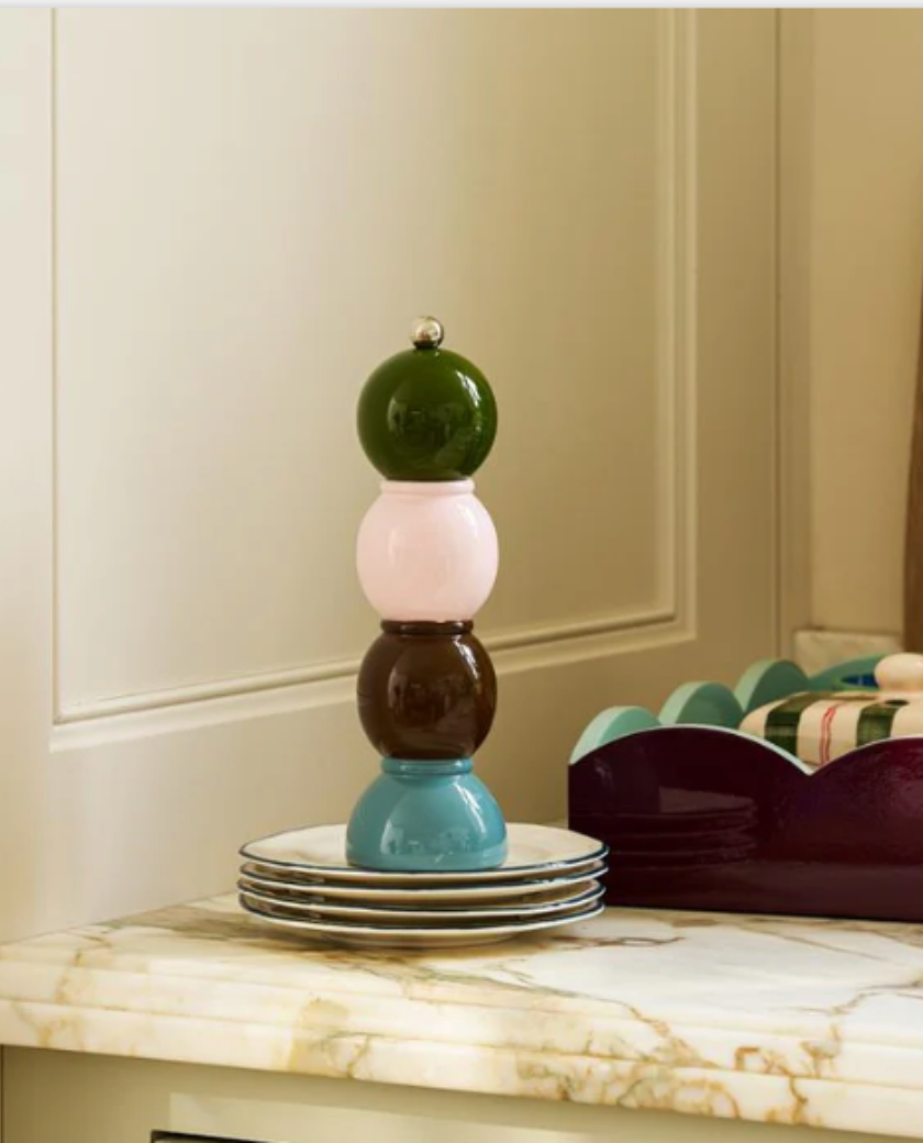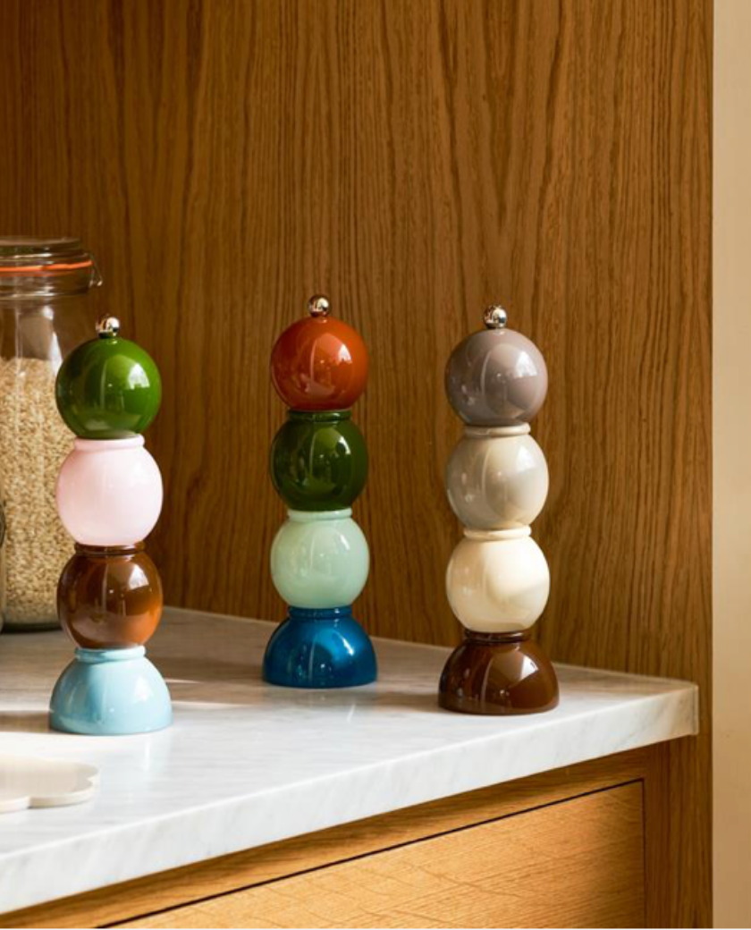 Original, decorativo molinillo de pimienta o sal, está hecho de madera maciza de caucho con certificación FSC, acabado con 8 capas de laca de alto brillo pulidas a mano entre cada capa. Su diseño multicolor será el protagonista de tu cocina, mesa.