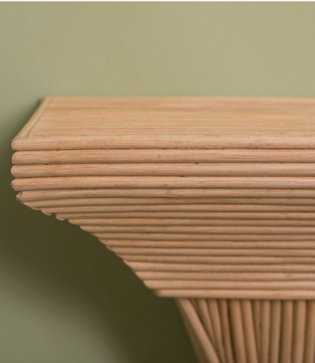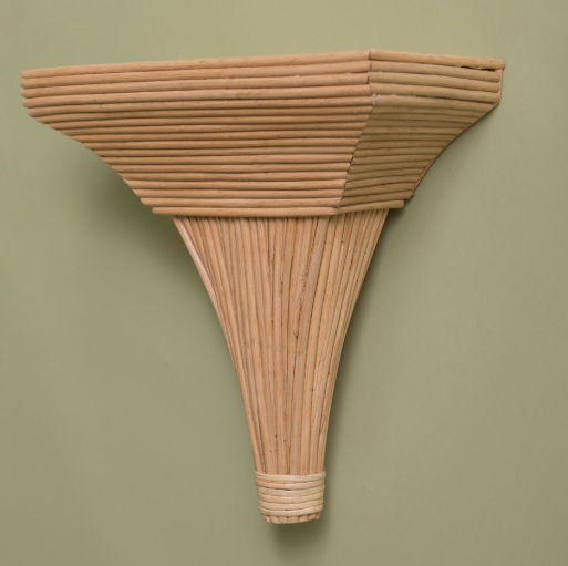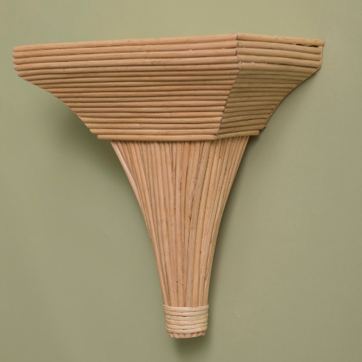 Elegante soporte de pared de ratán, hecho a mano por hábiles artesanos. Tiene una estructura de caña con finos detalles de ratán.