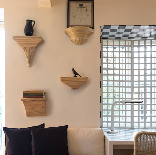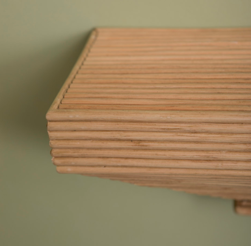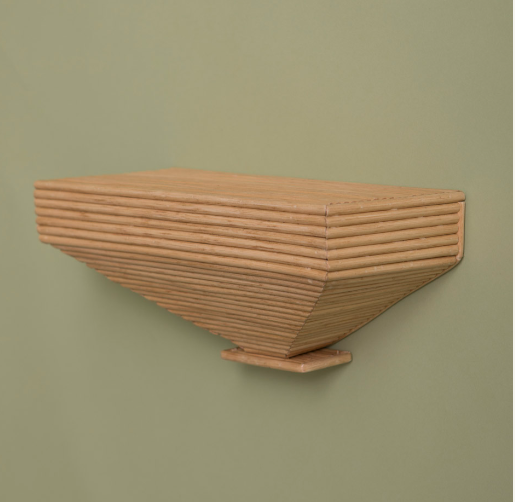 Elegante soporte de pared de ratán, hecho a mano por hábiles artesanos. Tiene una estructura de caña con finos detalles de ratán.